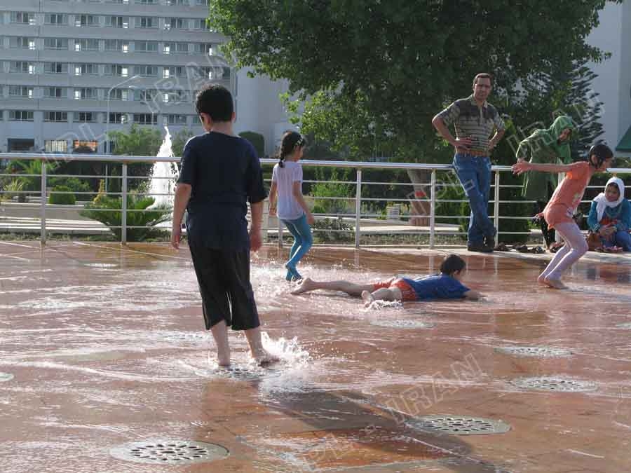 این سیستم از آخرین دستاوردها و تکنولوژی های روز بهره برده وبا بهترین تجهیزات ممکن بصورت سیستم ثابت بر کف آبنما اجرا گردیده و پوشش آن با سنگ های تزئینی انجام شده است .کلیه تجهیزات نصب شده توسط کامپیوتر کنترل و هدایت می شوند . ساخت و اجرای آبنمای اینتر اکتیو فوق در تاریخ 1392/6/9 شروع و در تاریخ 1392/12/20 به اتمام رسید و در تاریخ 1392/12/25 توسط تنی چند از مسئولین محترم مجموعه افتتاح گردید. این آبنما در مساحتی به وسعت 300 متر مربع و متشکل از افکت های بسیار زیبائی اجرا شده است .